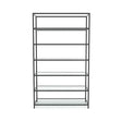 Freestanding Retail Shelf Merchandiser w/ Adjustable Glass Shelves - Black is backordered and will ship as soon as it is back in stock.