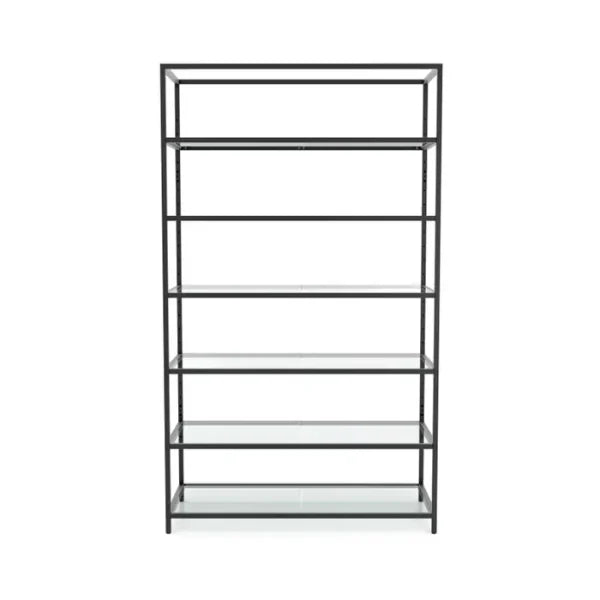 This unit is designed with cross-selling in mind, these merchandisers fit nicely with our Deluxe showcases and Cash Wrap Counters. The retail shelving merchandiser measures 54"L x 22"W x 92"H. Includes six glass shelves. Bottom shelf is in fixed position, the top five are adjustable.