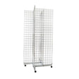 A freestanding gridwall gondola that can be easily customized using multiple accessories to fit a range of specific retail display needs. Available in black or white powder coated or a polished chrome finish. The unit can be quickly adapted for display with shelves, hang-rails, baskets and hooks etc. Pinwheel base is on wheels for easy mobility.