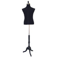 This black male shirt dress form is crafted from hard foam, featuring measurements of 39" bust, 34" waist, 29" height, and an 18" cross shoulder.